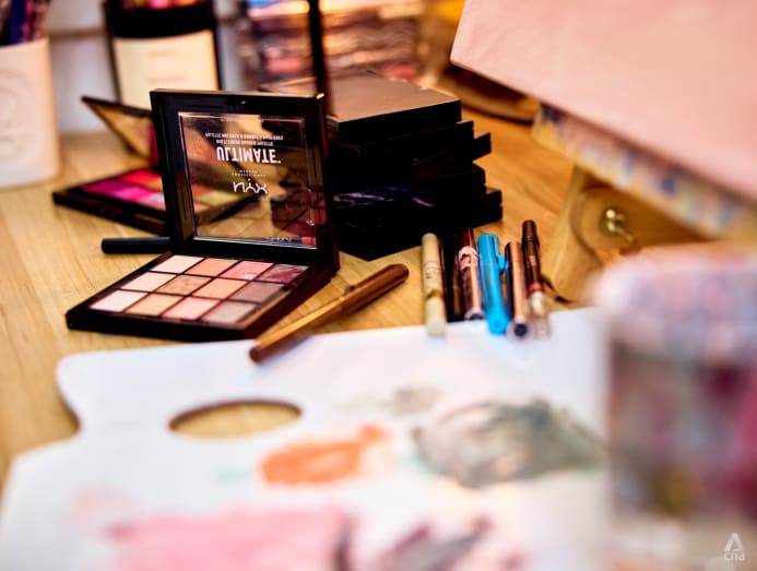 When CNA Lifestyle visited Lim at her cosy studio, there was an overflowing array of expired eyeshadow palettes and liquid eyeliners neatly arranged in boxes. According to Lim, she’s been very fortunate to have supportive makeup artist friends who regularly share their expired makeup with her.