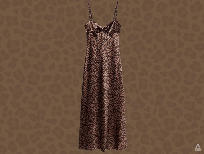 For those feeling adventurous, a full-length leopard print dress is a chic option, especially in relaxed, flowing silhouettes that feel modern and on-trend. A maxi leopard dress can go from day to night – dress it down with sneakers and a cap like model Irina Shayk for brunch, or add heels and a red lip for a party look.