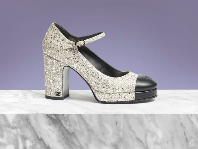 Chanel glitter and lambskin Mary Jane heels, S$2,230
