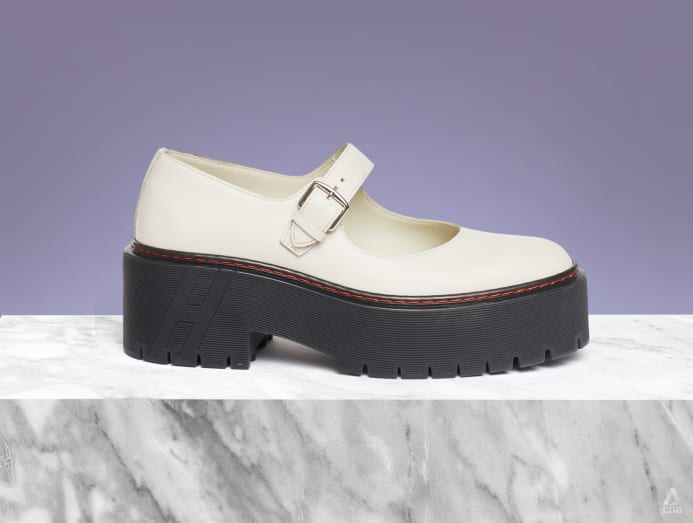 Fans of the iconic designer Tabi flats will be happy to know that it’s available in a Mary Jane style too, albeit with a stacked cylindrical high heel.