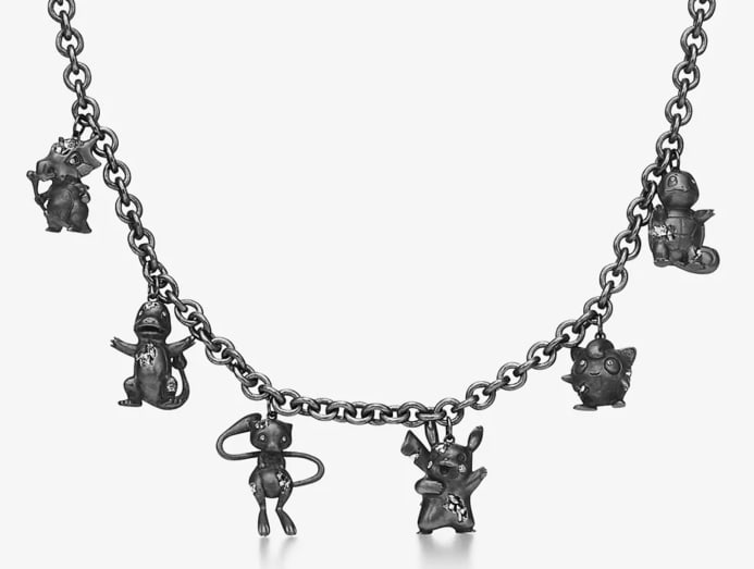 One of the key items in Tiffany & Co's collection is this oxidised sterling silver pendant with diamond accents featuring six beloved Pokemon: Pikachu, Charmander, Squirtle, Jigglypuff, Cubone and Mew.