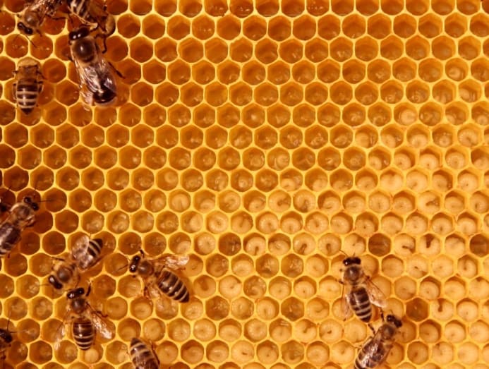 So why are honey and bee derivatives such hot and sticky property? First, a quick lesson on how honey is produced. Bees collect flower nectar, which gets broken down into simple sugars by the bees and stored in honeycombs. The hexagonal design of the honeycomb and the fanning of the bees’ wings causes water to evaporate from the nectar, creating sweet, liquid honey.