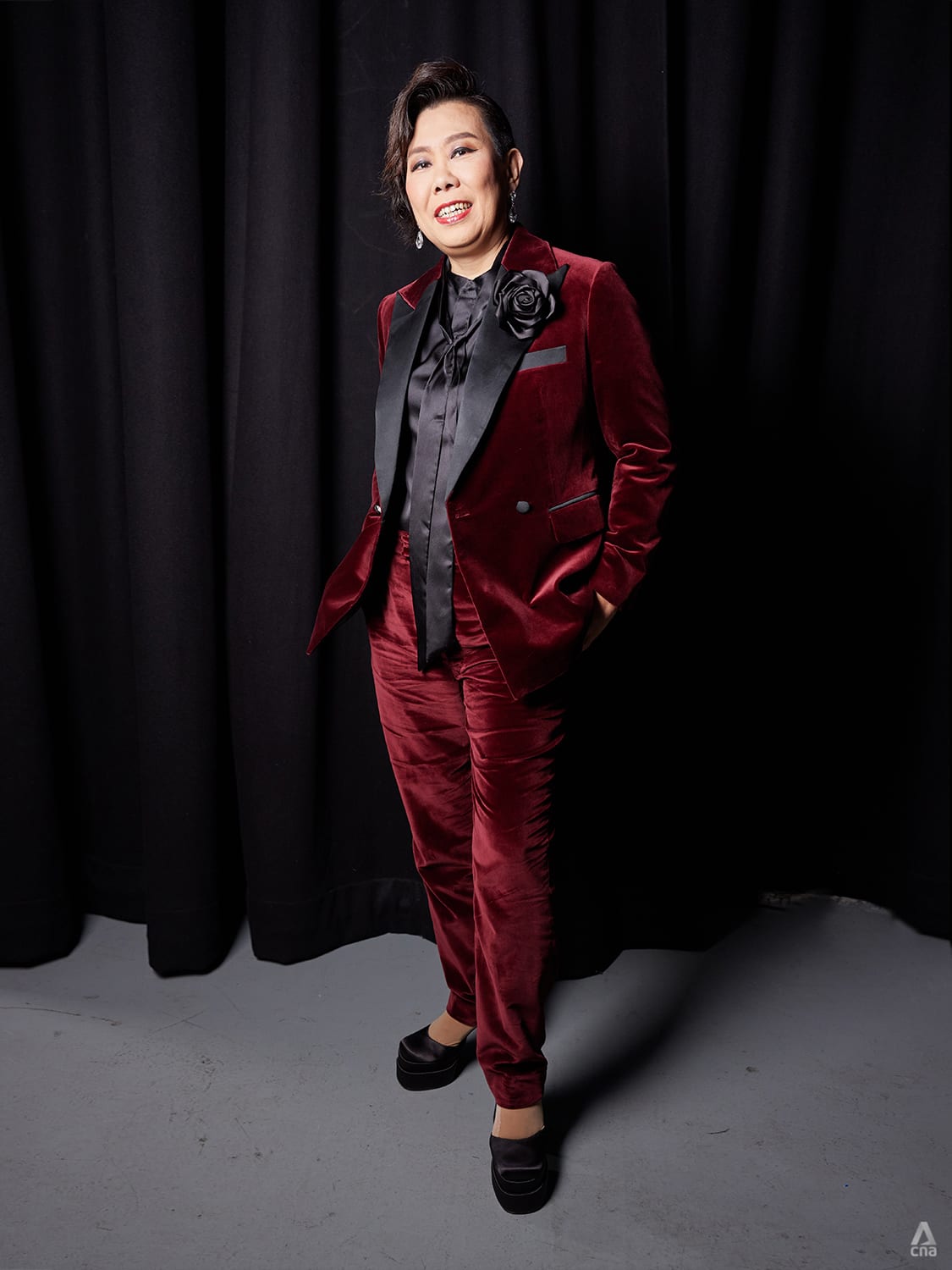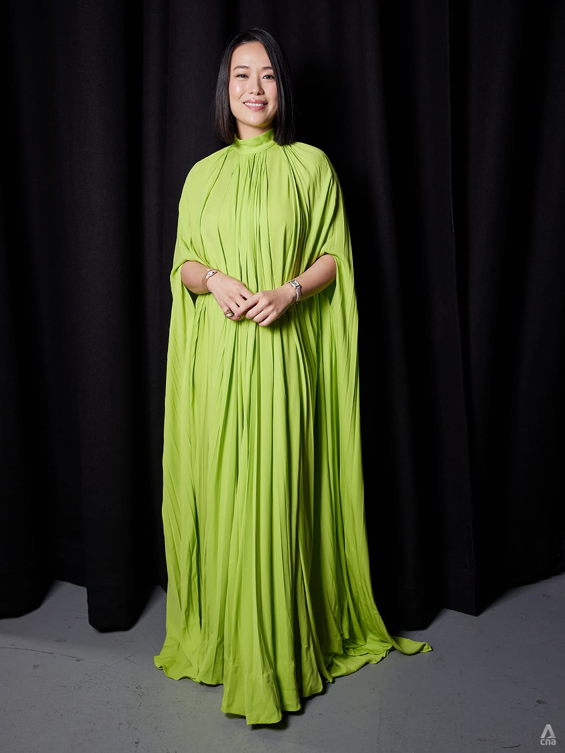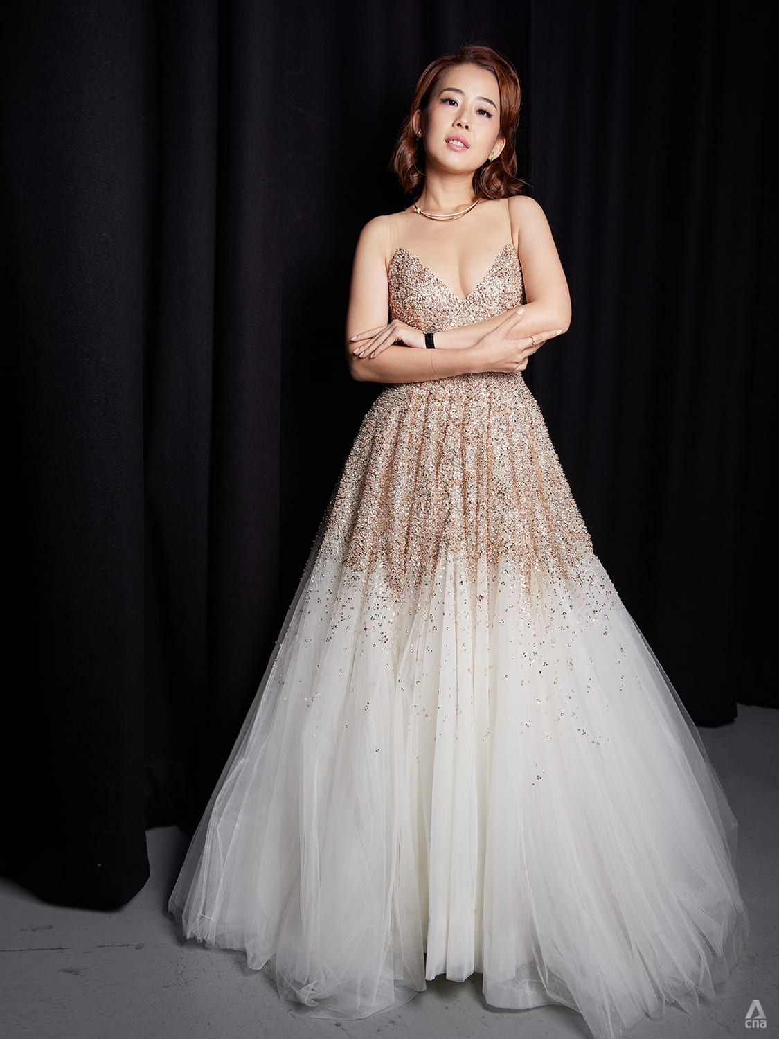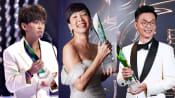 Ya Hui exuded silver screen goddess energy in this pleated gold gown. The “huat”, or prosperity, colour was a happy coincidence with her eighth Top 10 Most Popular Female Artistes win.
