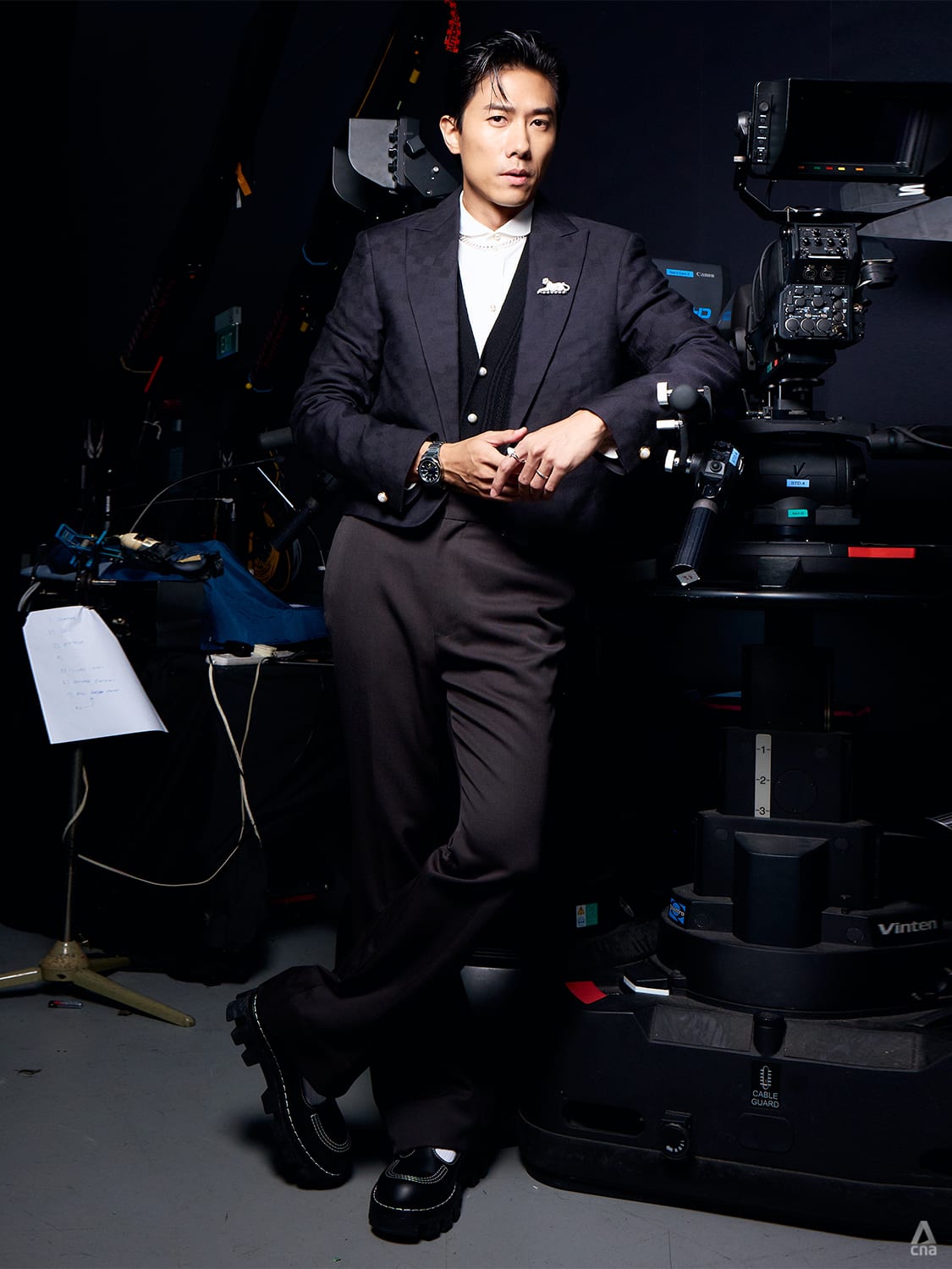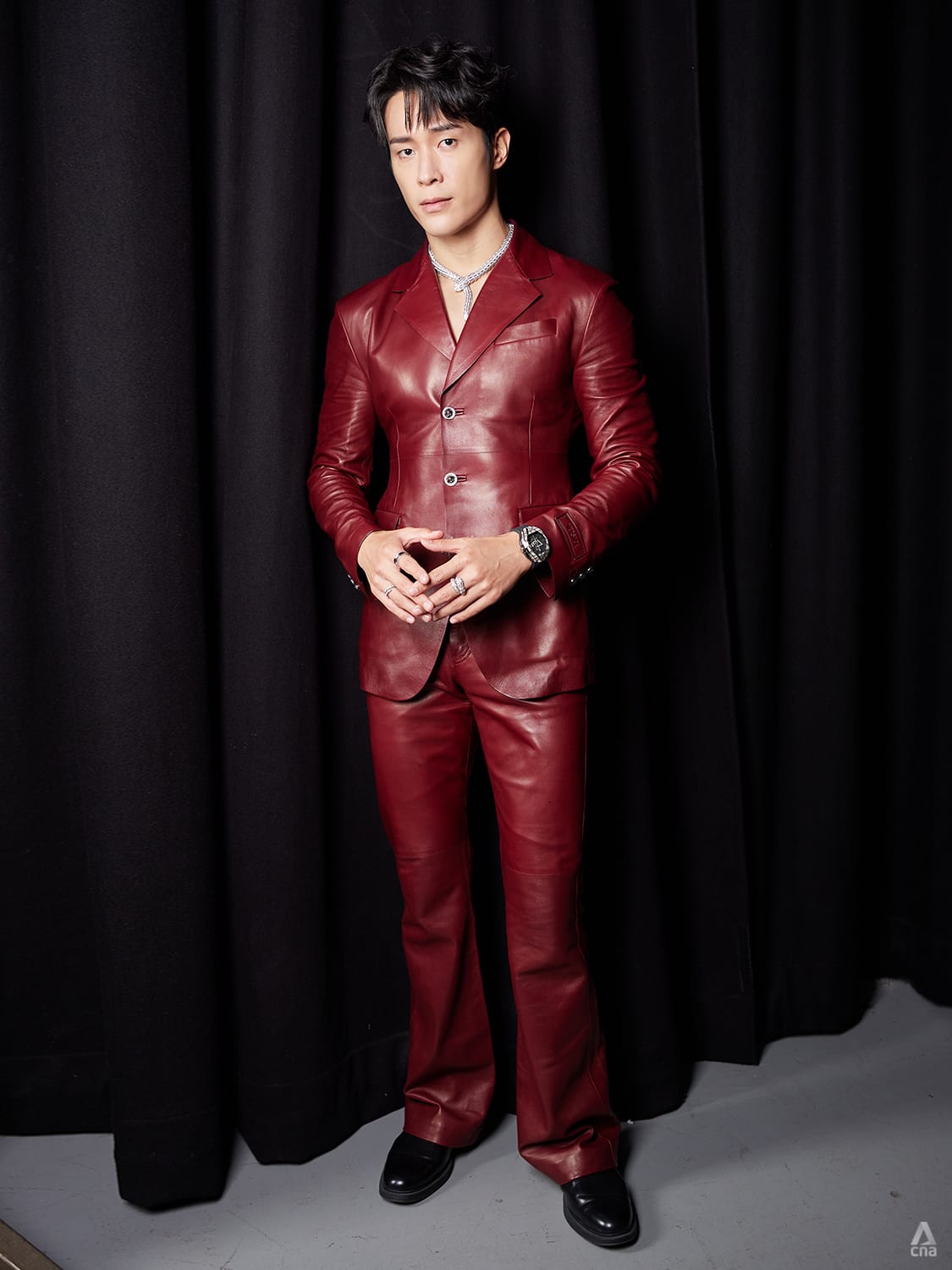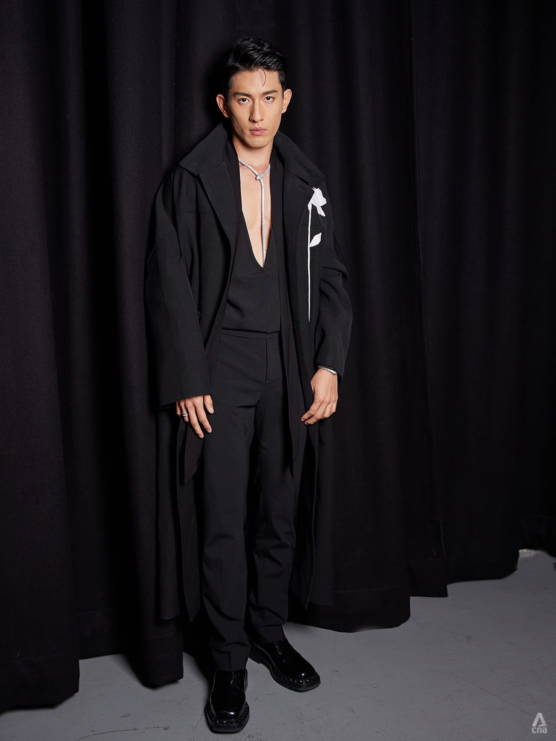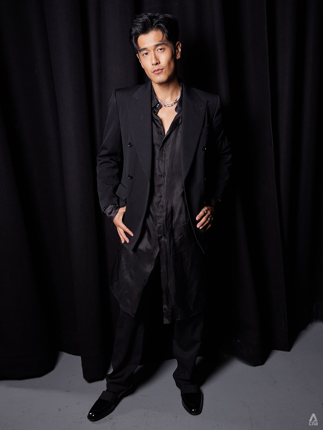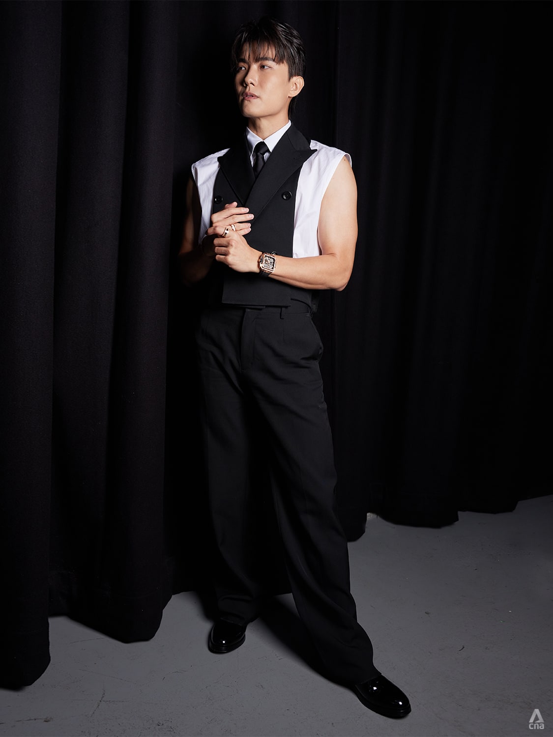 Best Actor nominee Desmond Tan played with different shades of black for an uber fashion take.