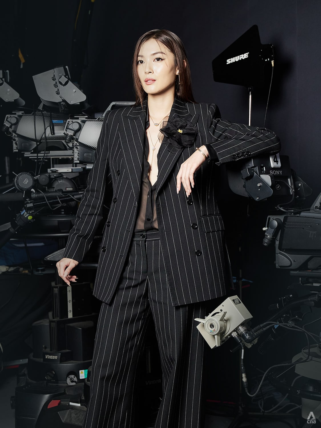 Former Miss Singapore Cheryl Chou’s pinstriped Dolce & Gabbana suit is as handsome as they come when women don suits.