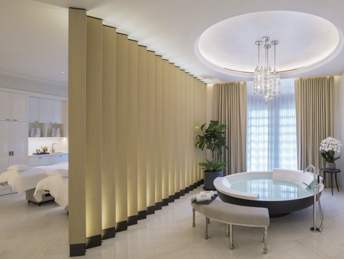 The extensive menu – hydrotherapy including a sauna, a steam room, an ice fountain, a vitality pool, not-so classic facials using pearl-infused skincare by Japan’s foremost pearl marque Mikimoto, soul-healing spa treatments, restorative body massages and fitness classes – is a big draw for many to spend hours upon hours, going from treatment to treatment to prolong the state of bliss. Couples can also opt for The Gem Suite Experience to create customised experiences.