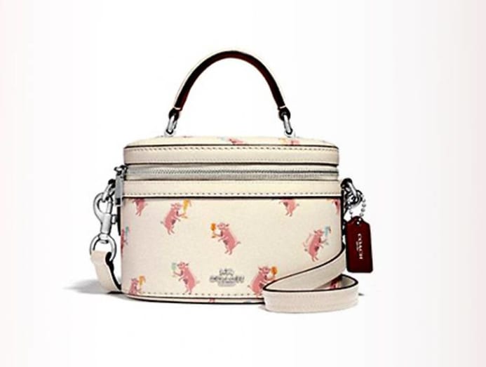 Now here is a party pig we love. After all, what’s not to like about these merrymaking piggies that’s putting a celebratory spin on Coach’s archival Trail bag?