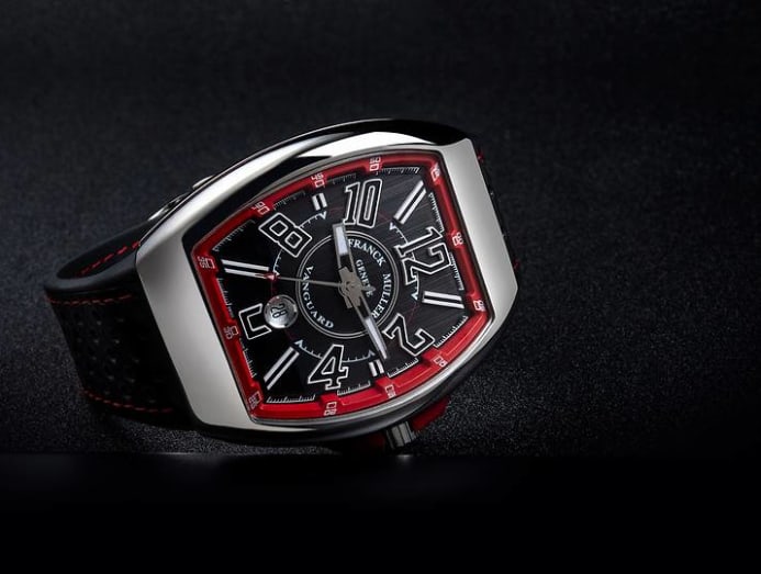 Franck Muller’s Vanguard Ergal Racing is one for petrolheads. Not only is the red-black-white colourway reminiscent of motorsports, but the case sides are enhanced by Ergal, an aluminium compound used extensively in the aeronautical and automotive racing industries.