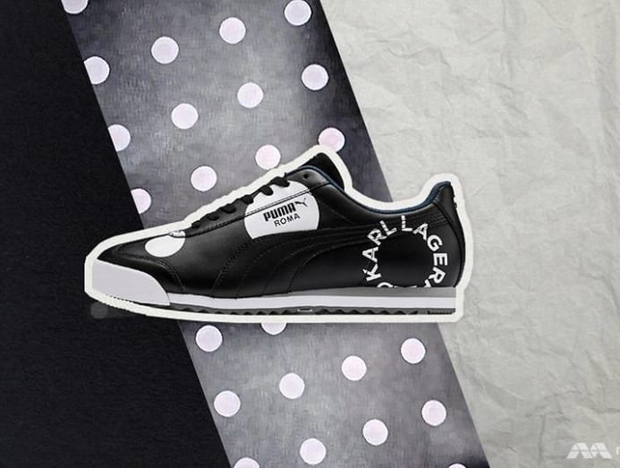 The second is a release of two special-edition sneakers – a unisex Roma and a Roma Armor for women – with the late Karl Lagerfeld’s eponymous label. Both reflect Lagerfeld’s penchant for black and white via their youthful polka-dotted designs that are crafted in leather.