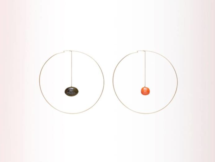 Everything about Jacquemus is larger than life (remember those exaggerated straw hats?), including these giant hoops earrings. But these aren’t just your average hoops. The hotshot French designer took them a step further by dropping mismatched shoulder dusters right down the middle to offer up the best of both worlds.