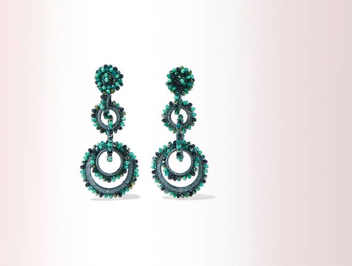 Designer Bibi Marini tapped Colombian artisans for these snazzy Sundrop hoops. Handmade out of silk, beads and crystals, these colossal earrings are surprisingly lightweight.