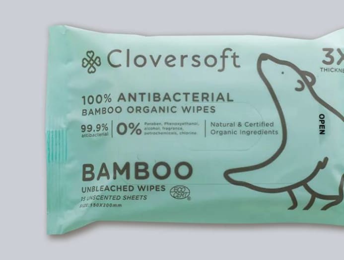 CLOVERSOFT UNBLEACHED BAMBOO ORGANIC ANTIBACTERIAL WIPES, S$1.20 (15 SHEETS)