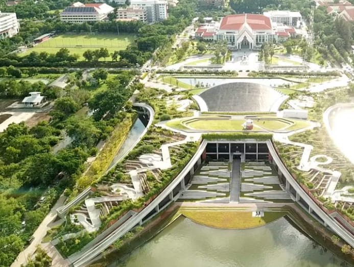 Opened in 2017, Chulalongkorn Centenary Park is a critical piece of functional architecture that reduces inundation risk in the city during periods of heavy rain, by collecting, treating, and holding millions of litres of water, reducing pressure on sewage infrastructure.