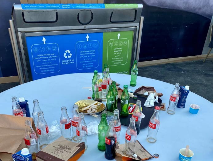 Garbage bins, with carefully labelled sections for recycling have nevertheless overflowed with trash. Rare tables and seats have become makeshift dumping grounds.