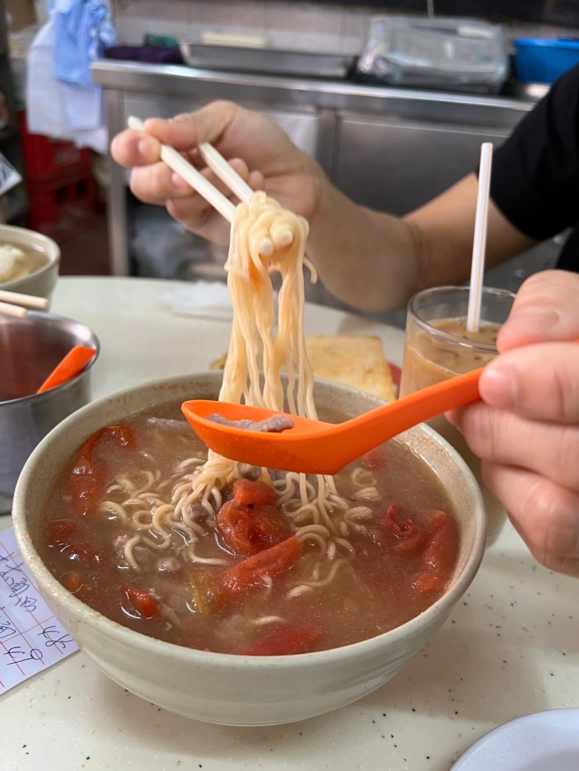 This hole in the wall is a staple in the Sheung Wan neighbourhood; best known for its sweet soy sauce marinated pork chops you can have over plain rice or a piping hot bowl of instant noodles. I come here for the tomato noodles (you can opt for vegetarian, beef or pork chops) and the beef and onion satay toast – a delicious mess that's a great way to start the day. Wash it all down with a hot cup of milk tea or iced lemon tea.