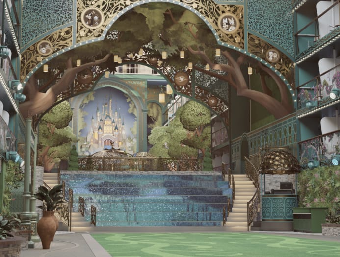 Look forward to many entertainment experiences, including the signature Walt Disney Theatre. The palace is equipped with state-of-the-art production equipment. Inspired by the classic animated film Fantasia, Walt Disney Theatre will be adorned in elegant blue tones and radiant gold accents. Every guest aboard the Disney Adventure will have the opportunity to experience two original Broadway-style productions during their voyage.