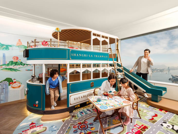 The family rooms at Island Shangri La include a bunk bed and a play area with some iconic Star Ferry and Hong Kong tram-themed designs. These rooms range from Fisherman's Cove and Garden Lodge to Campervan. All suites have kids' amenities, from nappies to highchairs and bottle warmers.