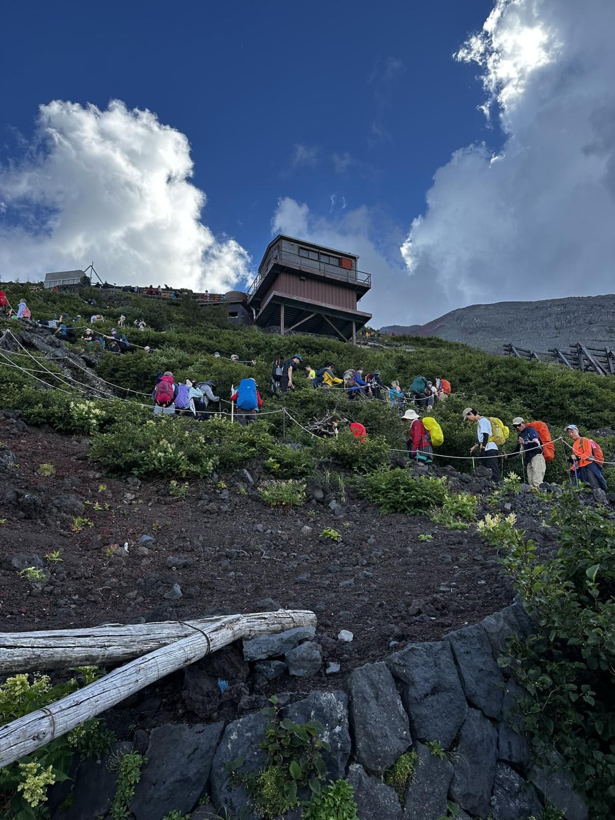 We had a longer break at the mountain hut at the 7th station, located 2,740m above sea level. Mountain huts offer food, such as Japanese curry and rice, cup noodles, corn soup and a sweet red bean soup with grilled rice cake. Our guide advised against eating too much as it would make climbing more difficult.