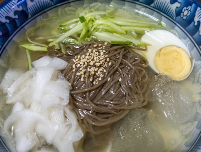 When I told a Korean friend how the broth tasted mild, he wasn’t surprised. According to him, aficionados appreciated the blandness and would slurp their buckwheat noodles unseasoned. Once hooked, one can't go back to eating other variations of naengmyeon.