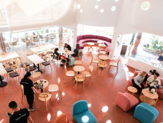 Sipping on ice-cold Vietnamese coffee infused with coconut, I savoured the sight of the endless blue dotted with dozens of fishing boats and Vietnam’s iconic round basket boats. If it gets too warm, you can seek refuge within the cafe’s soothing terracotta, white tones and pastel interiors.