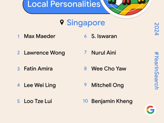 On Tuesday (Dec 10), Google unveiled its annual Year In Search 2024 lists which highlight the topics that captured the attention of Singaporeans in 2024.