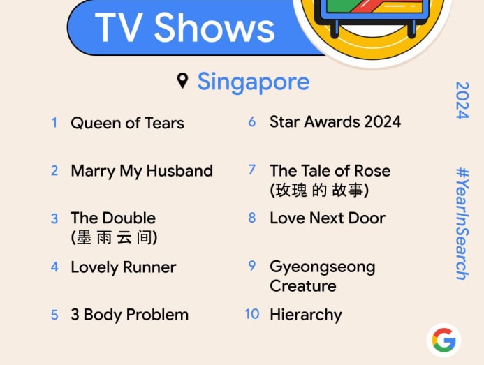 K-dramas continue their chokehold on the small screen in Singapore, with Queen Of Tears and Marry My Husband topping the list of most searched TV shows in the country this year.