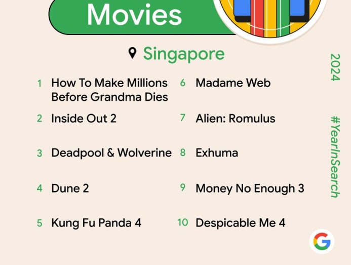 Given the impact How To Make Millions Before Grandma Dies had on Singaporeans, it's no surprise to see the Thai tearjerker topping the list of most-searched movies in Singapore. It even trumped Inside Out 2 and Deadpool & Wolverine – both of which are the highest-grossing movies in the world in 2024.