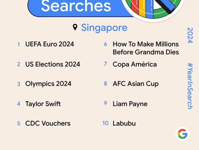 UEFA, Taylor Swift and Labubu among top Google searches in Singapore in 2024