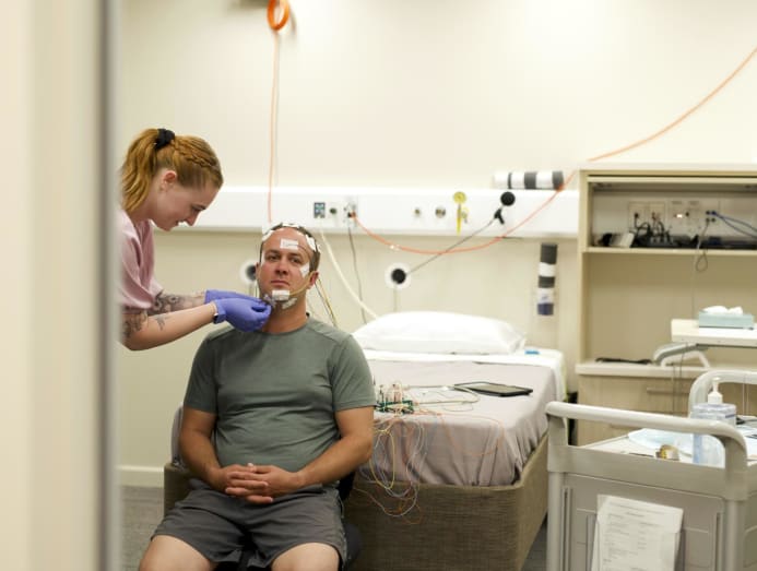 There was also Kate Hill, a mother and nurse student, who was about to embark on the next chapter in her career – and impending shift work at the hospital didn’t bode well for this insomniac who has tried everything, including sleeping pills. Comedian Jon Brooks wasn’t joking when he said he was tired of constantly feeling low in energy and mood because of his COMISA, a double whammy of chronic insomnia and sleep apnoea.