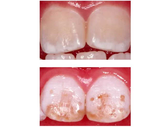 Fluorosis typically starts during childhood. “The development of the crown (top part of the tooth) completes at about three years old for upper permanent front teeth, and about nine years old for the back teeth,” said Dr Lai.
