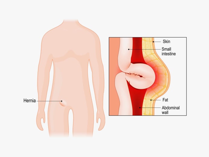 “Hernias generally begin with an increase in abdominal pressure, causing an organ like the small intestine, to protrude through a weakened muscle or tissue,” explained Dr Lomanto. This can be caused by genetics, weakened muscles through ageing or a collagen deficiency.