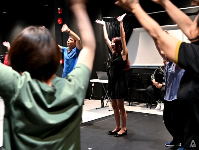 Visually impaired performers like Ms Teo use a mixture of memorising footsteps, sound cues and guiding by a sighted actor to move around the stage, according to Mr Sau.