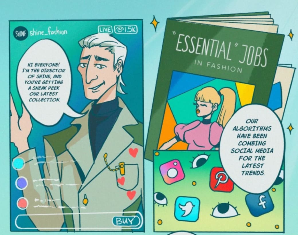 For instance, Low collaborated with content platform Think Tank Studio on a comic series called Essential Jobs. The series explored the complex issue of labour exploitation in seemingly glamorous industries such as social media, fashion, and tourism, which thrive on the mistreatment of workers by underpaying them or co-opting their stories.