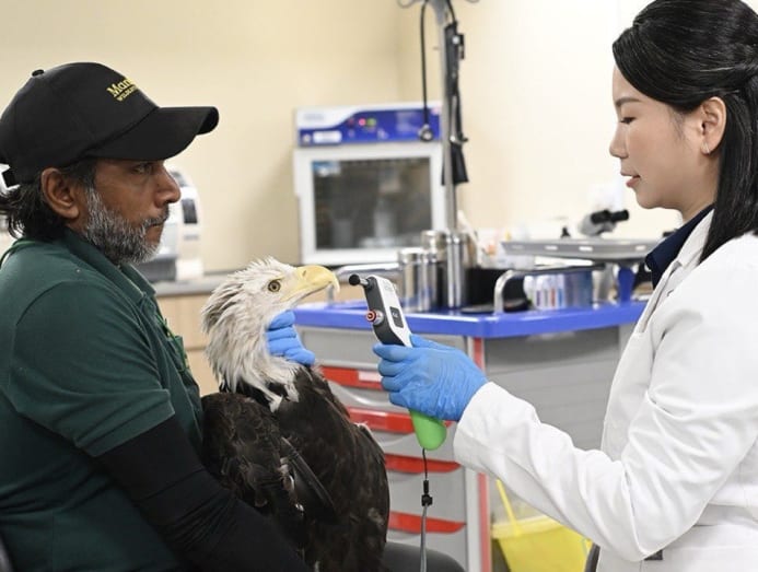 Lago is one of many birds Dr Boo treats – she is the go-to ophthalmologist for Bird Paradise. If you frequent the wildlife park, you may have seen many of her colourful patients, which include king penguins, African penguins, a hawk, an eagle, a toucan and even a duck.