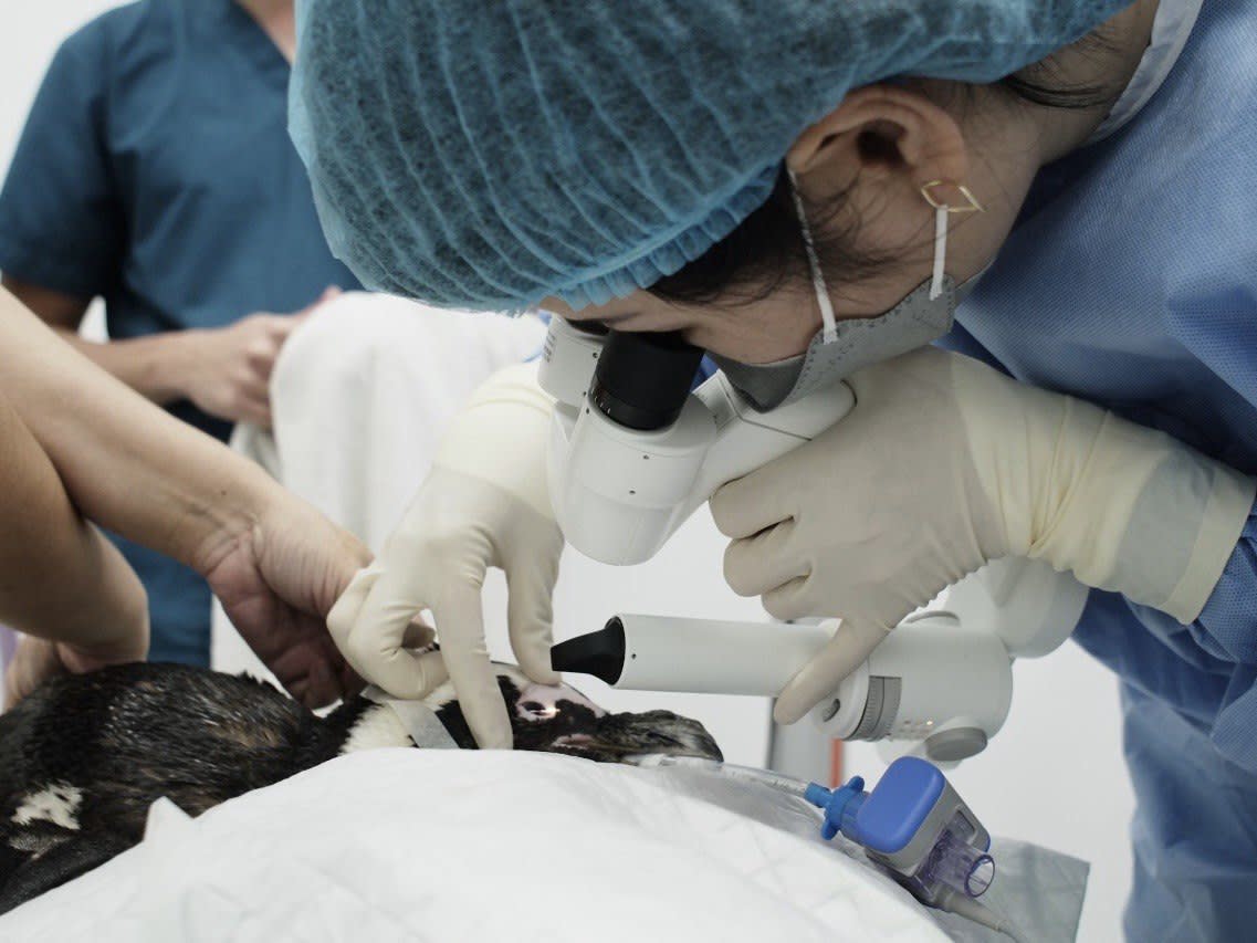 In front of me lies an anaesthetised and motionless 15-year-old grey dachshund cross. And with me is animal ophthalmologist Dr Gladys Boo, her hands working ceaselessly, while both feet periodically pressed on what looks like pedals.