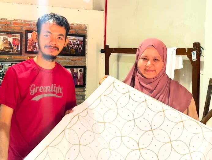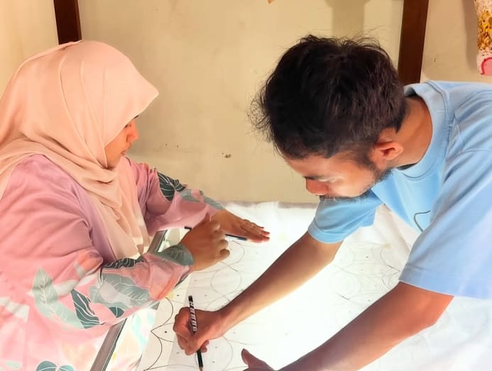 Angga, who is deaf and mute, taught her how to create the ancient and traditional patterns using beeswax, natural dyes, and different types of fabrics.