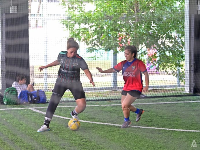 CNA Women joins the Nighthawks, one of the top teams in Singapore’s amateur women’s futsal scene, during a Women’s Futsal Crazy League match.
