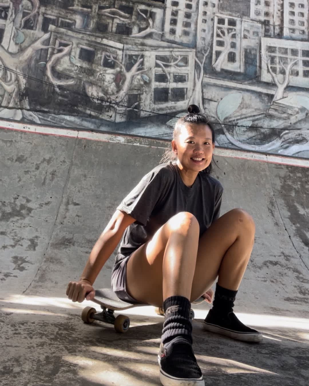 So she taught herself. She watched YouTube and Instagram videos, and then practised at skateparks in Somerset, East Coast Park and Lakeside, sometimes spending hours to master a single trick.