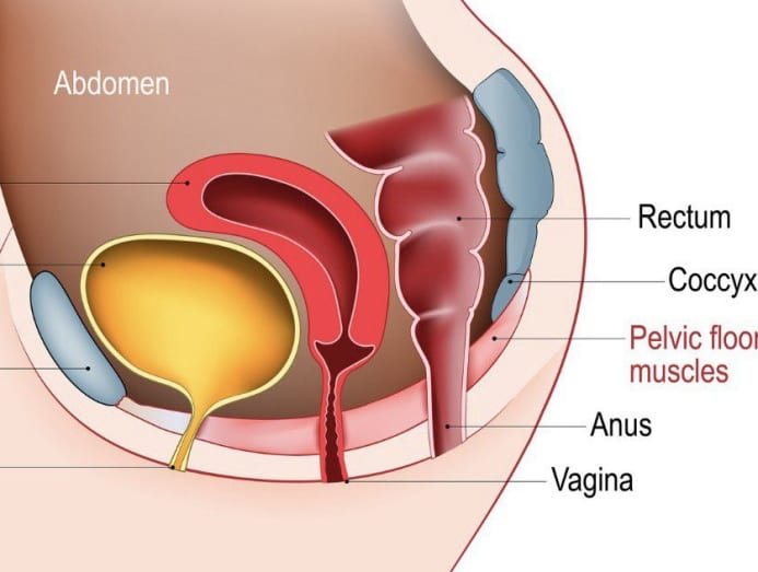 In women, the pelvic floor is a group of muscles and connective tissues that hold the bladder, uterus and bowel in place. These muscles form a “sling” stretching from the pubic bone to the tailbone.